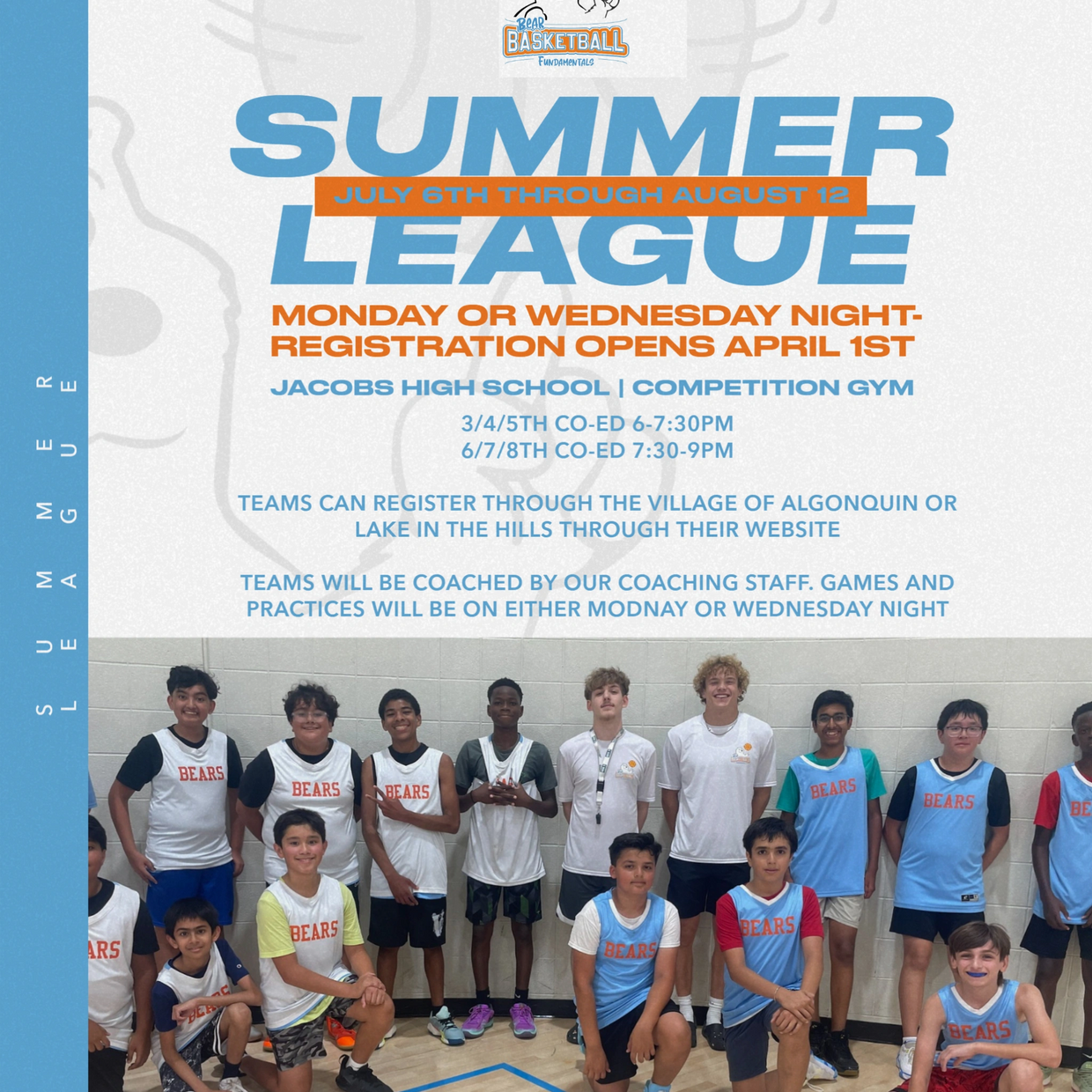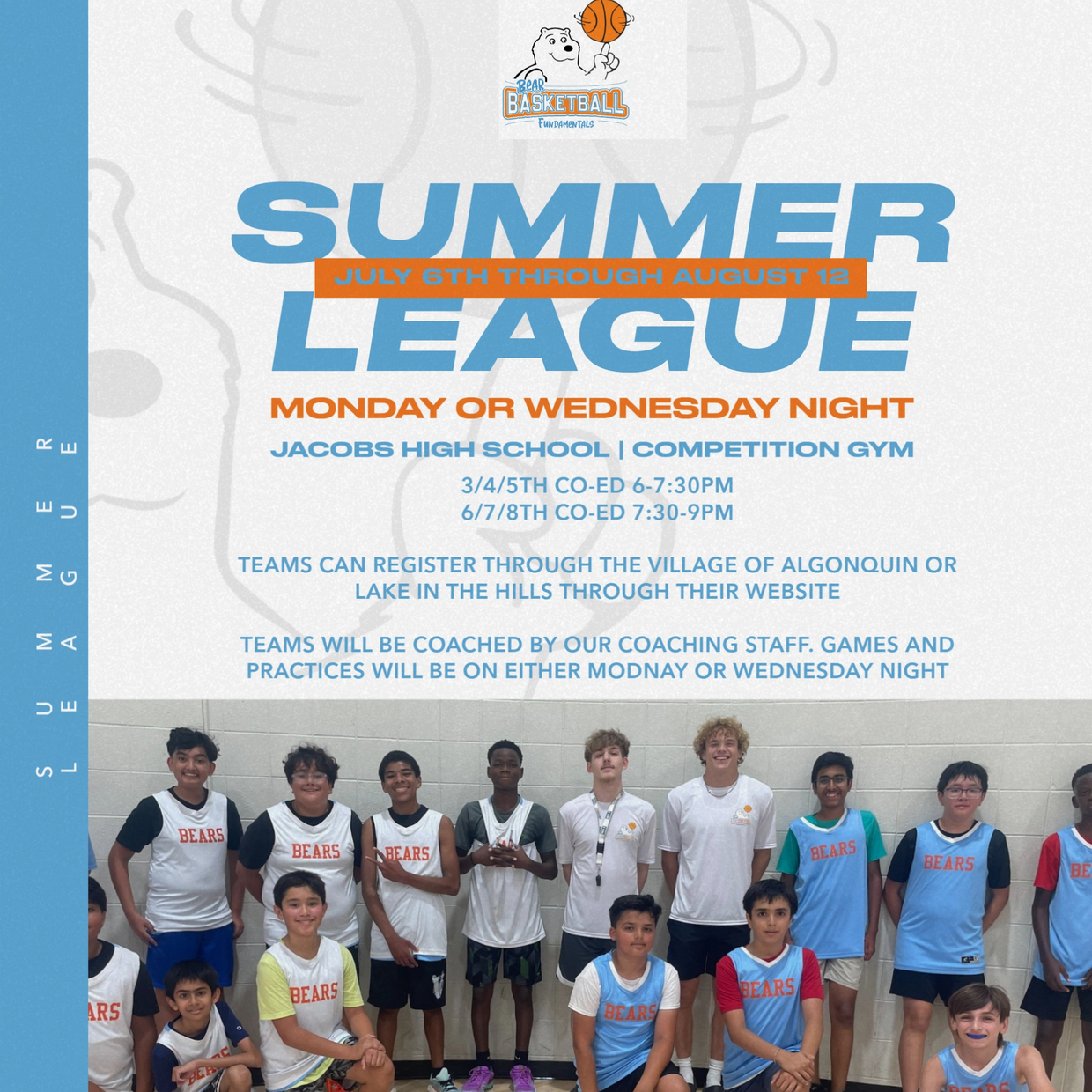 Our Bear Basketball Summer League is designed to teach your younger hooper different styles of basketball while working on their fundamental skills. Players will learn different styles of offenses like pass and cut, balls screen and motion offensives while at the same time learning denial, help and switching defensives. Individual skills are coached up at each practice like ball handling, body control, proper foot work, shooting form and defensive stance.